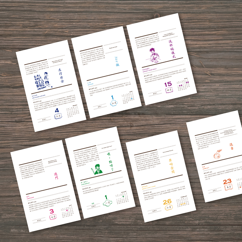 365日,每頁附以廣東話記錄的一個生活規矩或禮儀,讓廣東話活化在生活中,生活中保存著語言的文化!